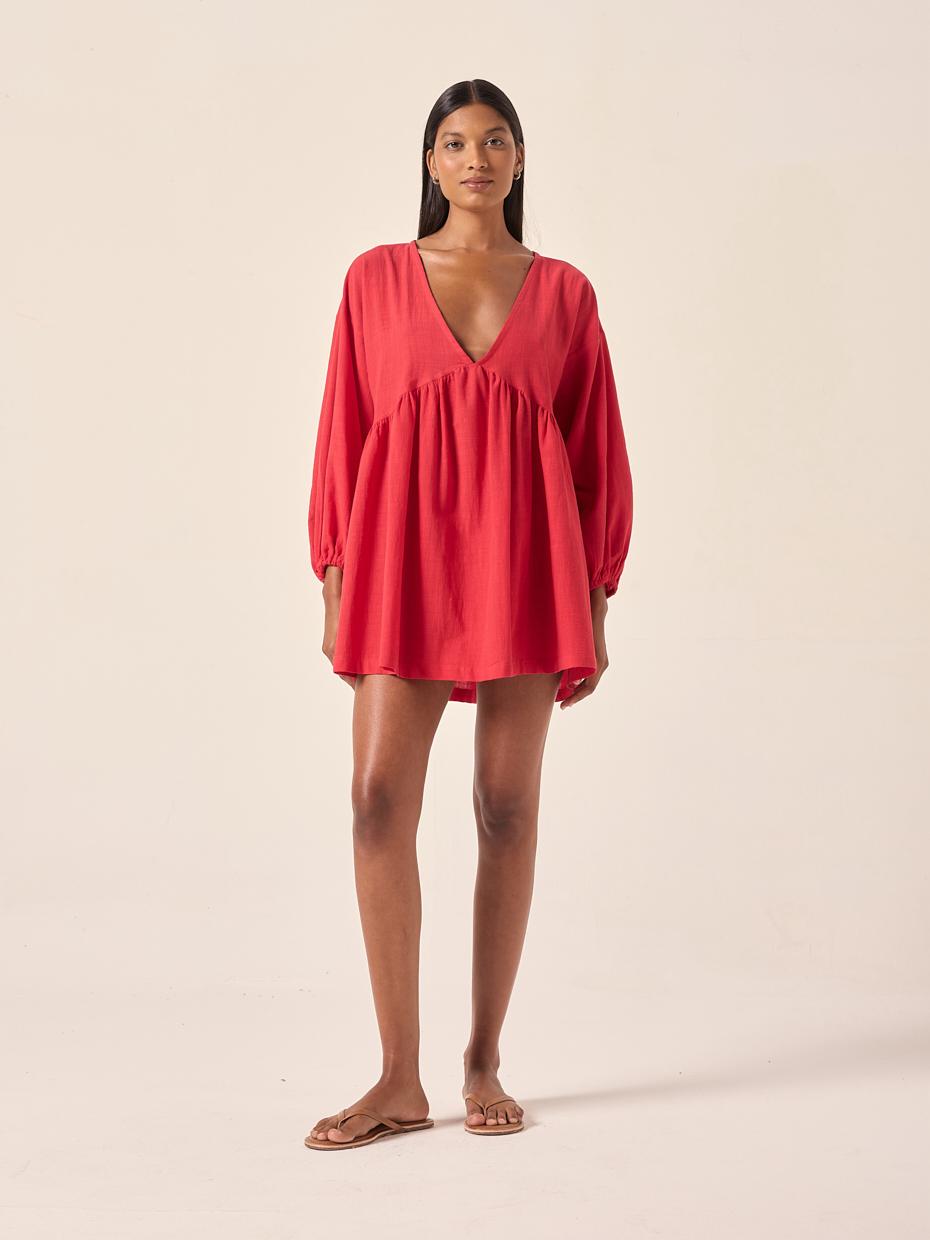 O Vestido Nina é a combinação perfeita entre conforto e feminilidade. Em modelagem ampla e leve, ele traz decote em V profundo e mangas bufantes com punho em elástico — um toque delicado e despretensioso. Possui cava deslocada e caimento solto, ideal para dias quentes ou para um look pós-praia cheio de estilo.